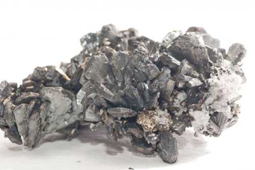 A native element, antimony metal is extracted primarily from stibnite, which contains 72 percent antimony and 28 percent sulfur. Stibnite is mined in only a few countries, with China being its largest producer. Antimony is used for many technological and industrial purposes. Antimony is used as a hardening alloy for lead, especially in storage batteries and cable sheaths, and also used in bearing metal, type metal, solder, collapsible tubes and foil, sheet and pipes, and semiconductor technology. Stibnite is used for metal antifriction alloys, metal type, shot, batteries and in the manufacture of fireworks. Antimony salts are used in the rubber and textile industries, in medicine and glassmaking.