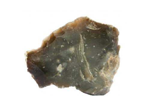 Chert, also known as flint, is a silica-rich sedimentary rock. Chert is very hard and its conchoidal fractures can leave sharp edges which do not dull easily. For this reason it was one of the earliest materials used for tools and weapons.