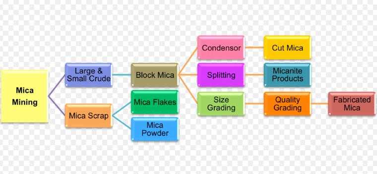 The mica industry can be divided into two distinct but interdependent industries: those that produce sheet mica, and those that produce flake mica. Each industry, although somewhat dependent on the other, produces different end products.