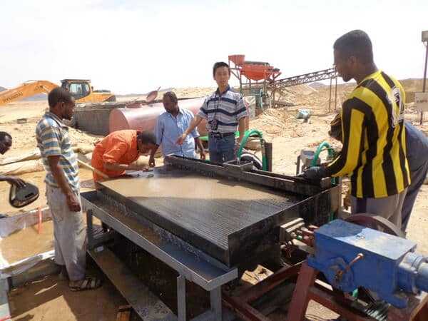 The gold shaker table is a flow film separation equipment, that usually used to separate the gold particle grains from the ore material in the gold processing plant. Shaking table concentrator is developed from the early stationary and movable chute box, from percussion shaking table ( used in the coal mining industry) to the wilfley table and mineral processing eccentric rod shaker table, various type of gravity table separators have been developed and applied, especially in the recovery process of some precious metal like gold. Contact us to get the latest shaker table price.